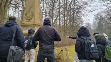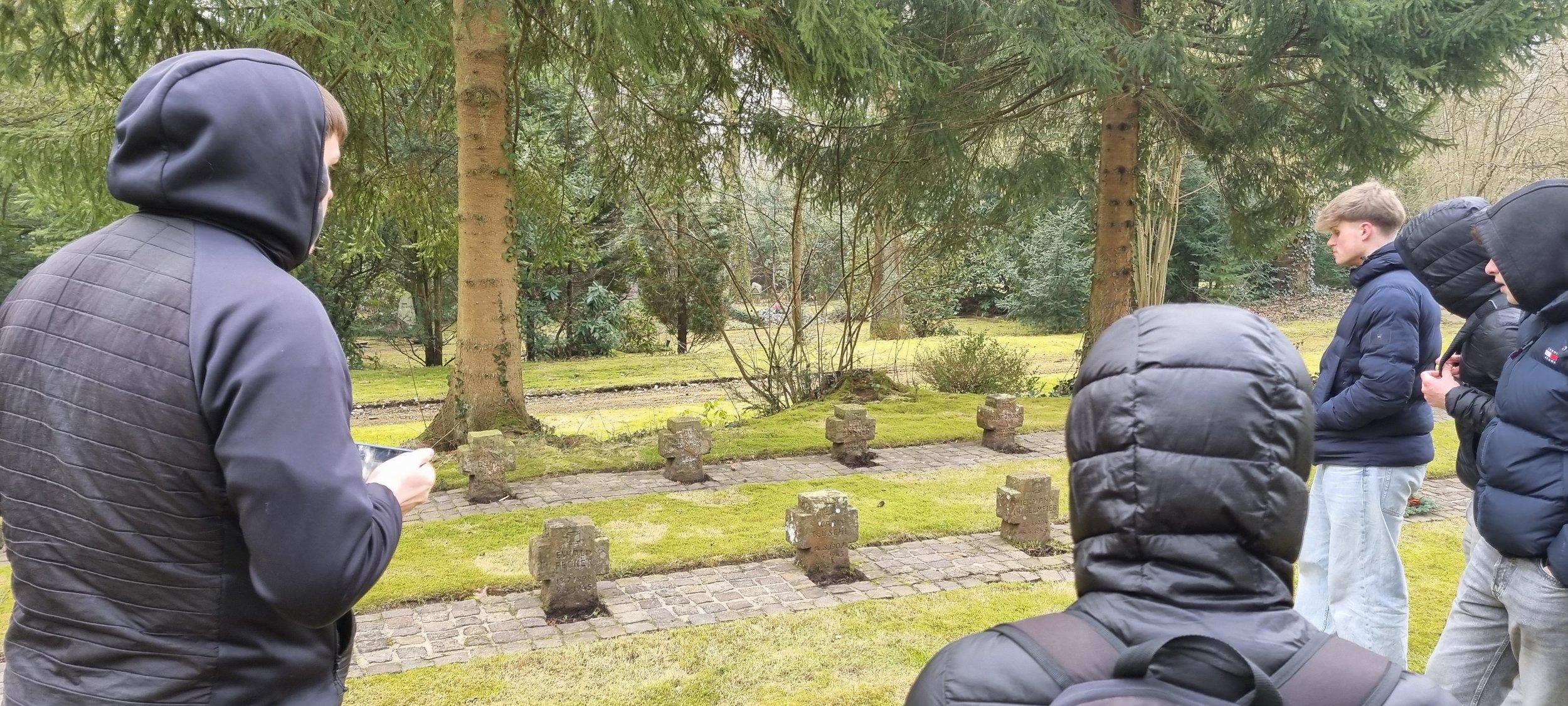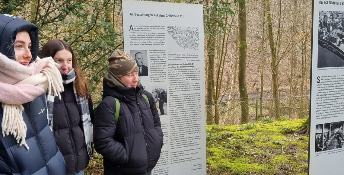 Im zweiten Teil ging es zum „Lernort Kriegsgräberstätte“. Nach einem Rundgang über die Kriegsgräberfelder auf dem Friedhof „Am Wehl“ in Hameln beschäftigten sich die Schülerinnen und Schüler in Gruppenarbeit mit den verschiedenen dort bestatteten Opfergruppen der nationalsozialistischen Gewaltherrschaft.