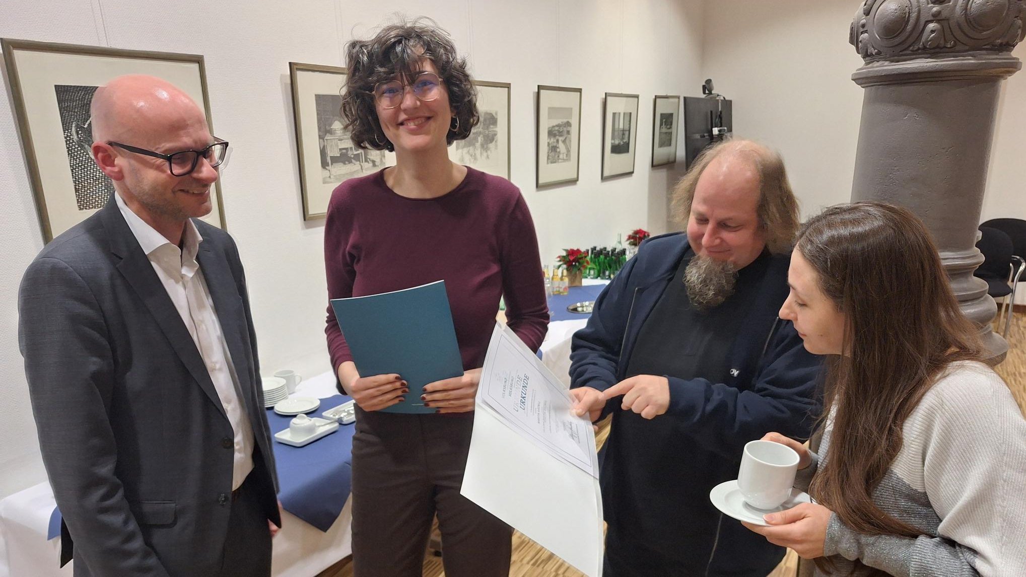 Wie die Zeit vergeht … denkt sich Martin Brüning. Er wurde gestern im Rahmen einer kleinen Feierstunde im Regionshaus für 20 Jahre Mitgliedschaft im Volksbund Deutsche Kriegsgräberfürsorge e. V. mit einer Dankesurkunde geehrt. Neben ihm steht Maike Pott. Sie ist bereits seit zehn Jahren dabei. Beide sind über die Jugendarbeit zum Volksbund gekommen und sind bis heute aktiv. Beide teamen und leiten im Sommer internationale Workcamps an verschiedenen Orten in Europa und engagieren sich darüber hinaus in unserer Jugendgruppe „Projekt Frieden“.